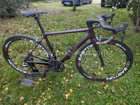 Vélo route lyti peinture Perso montage di2 dura ace 9070 11 speed ,pédalier rotor cintre Shimano pro intégral , pédalier rotor manivelle 170 mm, pédales Shimano Dura Ace,roue 50 montage artisanal à boyaux vélo moins de 7 kg en très bonne état . Servi un ans.